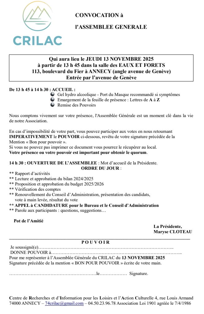 organisées par le Crilac. - En cas d'accident, prévenir impérativement Nicole